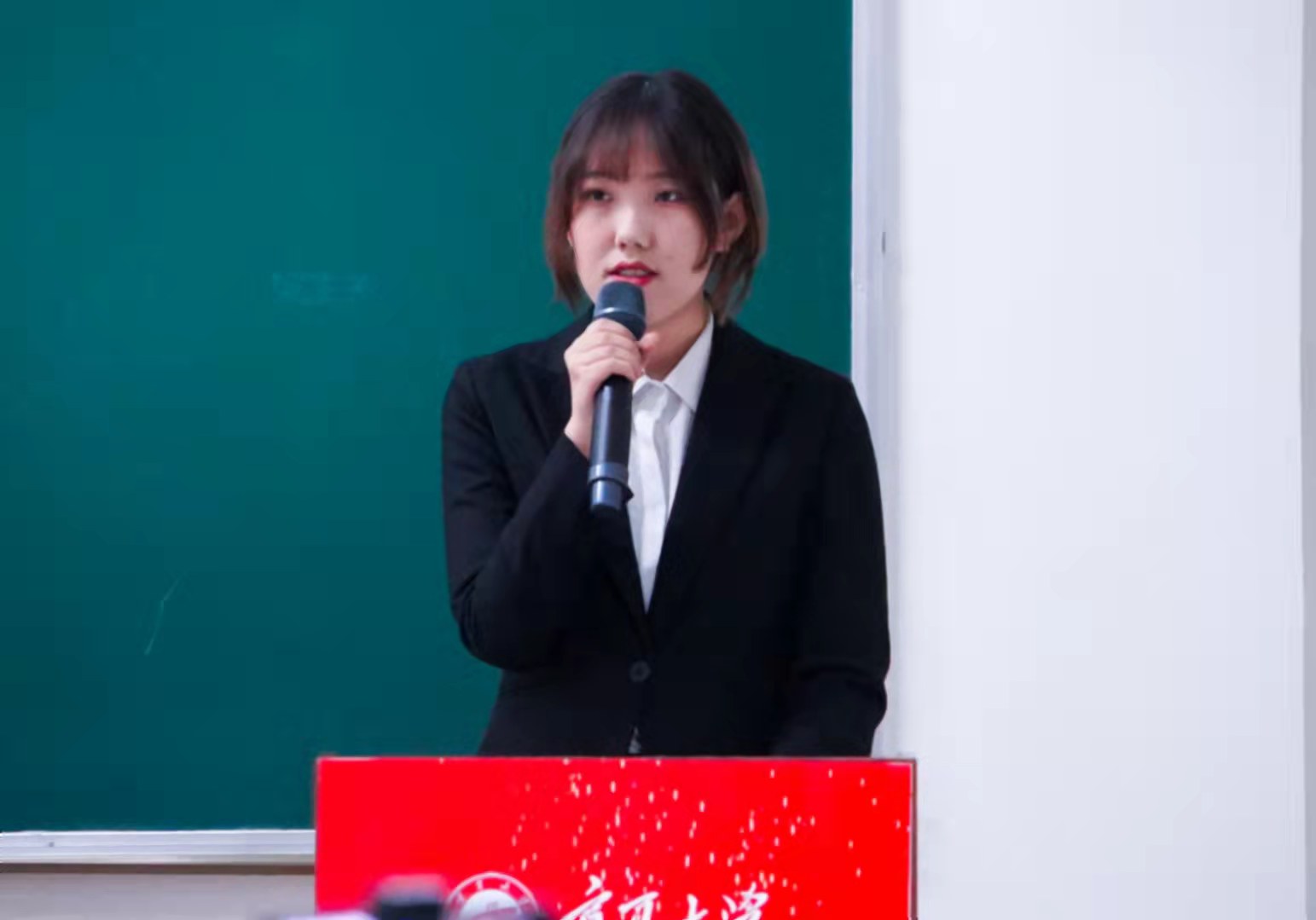 展现风采,践行初心。第十四期发展对象何璐代表全体学员发言。她讲到,她将珍惜党课机会,积极向党组织靠拢,加强各方面思想理论学习,争做一个合格的共产党员。第三十八期入党积极分子杨茹萍带领大家回顾了中国共产党的百年征程,并呼吁大家要有坚定的政治立场和政治思想,以实际行动争取早日入党,以昂扬的姿态,担起党赋予新青年的责任与使命。