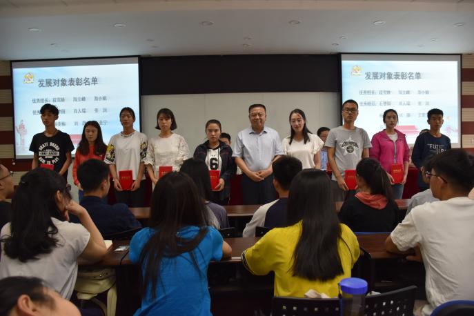 分党校2018年春季班培训工作进行了总结。程胜利和黄旭兴依次宣读了第七期发展对象,第三十一期入党积极分子培训班的合格学员名单,优秀组长、优秀组员表彰名单以及红色剧场暨毕业生党员教育活动的获奖小组名单。张桓依次为获奖学员和小组颁发了荣誉证书。
