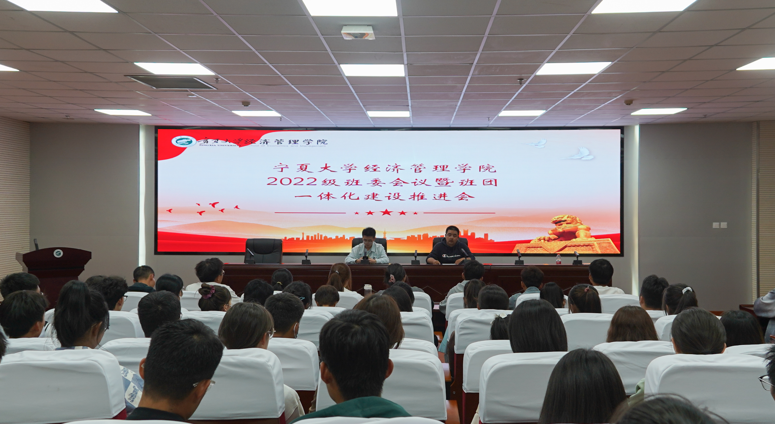在贺兰山校区文荟楼316会议室召开了2022级班委会议暨班团一体化建设推进会。学院团委副书记孙文元、鲁皓元以及2022级全体班委参加本次会议。