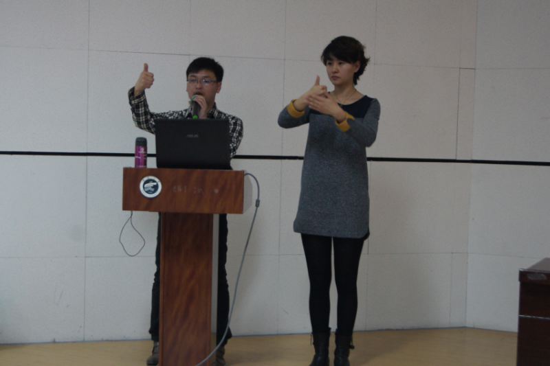 传媒中心讯杨翌茉/文】为了使广大同学关注社会弱势群体,更好的帮助和了解聋哑人,3月15日下午,“爱心进校园手语推广活动”在文科楼报告厅顺利进行。学院党委副书记桂晓兵,宁夏聋人协会主席江晓民,副主席张磊,外联部部长马贵,手语老师高原等出席了本次活动。本次活动由17k小说