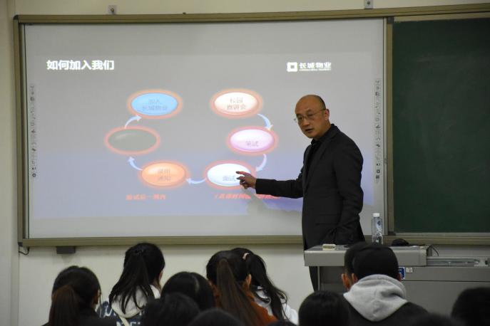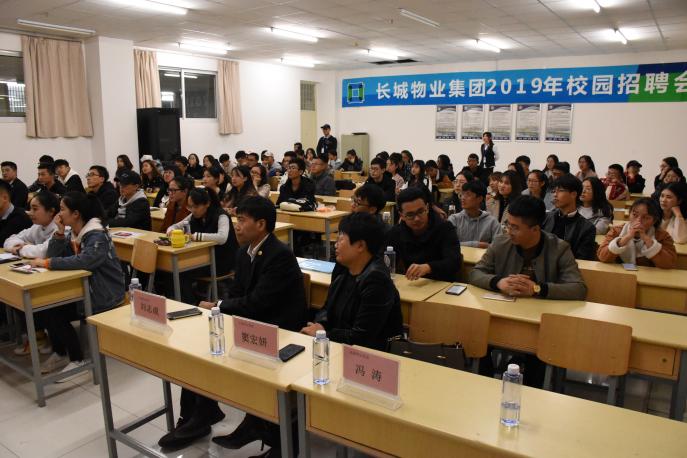 10月29日晚,贺兰山校区文荟楼405教室座无虚席,长城物业集团股份有限公司2019年招聘宣讲会在此举行,2015级应届毕业生积极到场参加。