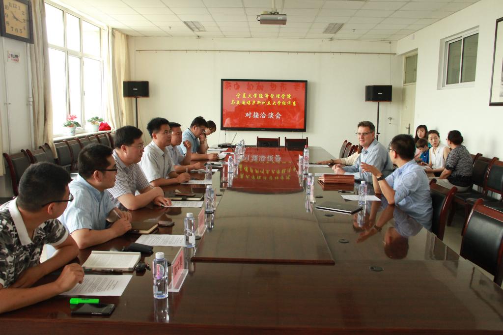 与美国堪萨斯州立大学经济系对接洽谈会”在文科楼会议室举行,出席会议的有美国堪萨斯州立大学经济系Blankenau教授及其妻子Angela,17k小说