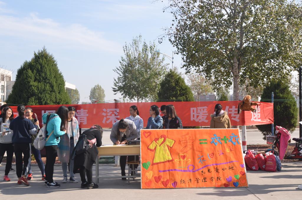 阳光爱心社针对偏远地区捐赠衣物的“衣旧温暖”活动在贺兰山校区食堂门口设点进行。