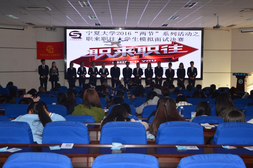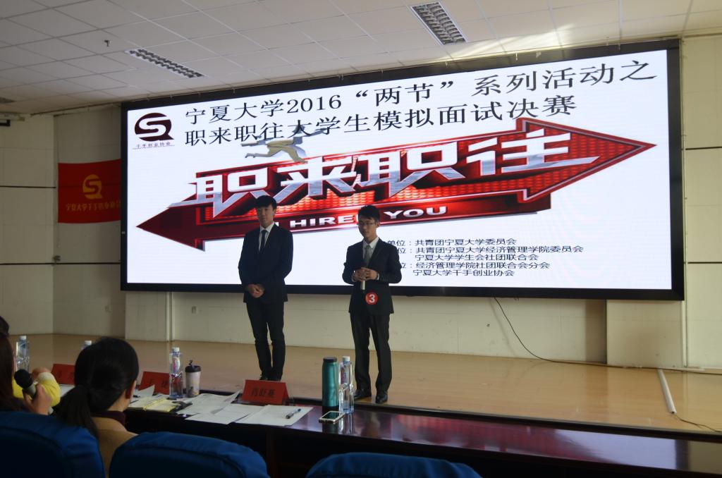 贺兰山校区文科楼东报告厅圆满结束,宁夏盛世华唐科技有限公司总经理何帅,易购一号商贸有限公司法人代表绉克双,凯迪拉克销售公司人事行政经理于捷和宁夏工商学院商贸系主任黄丽华出席此次活动并担任嘉宾。各校参赛学生观赛。