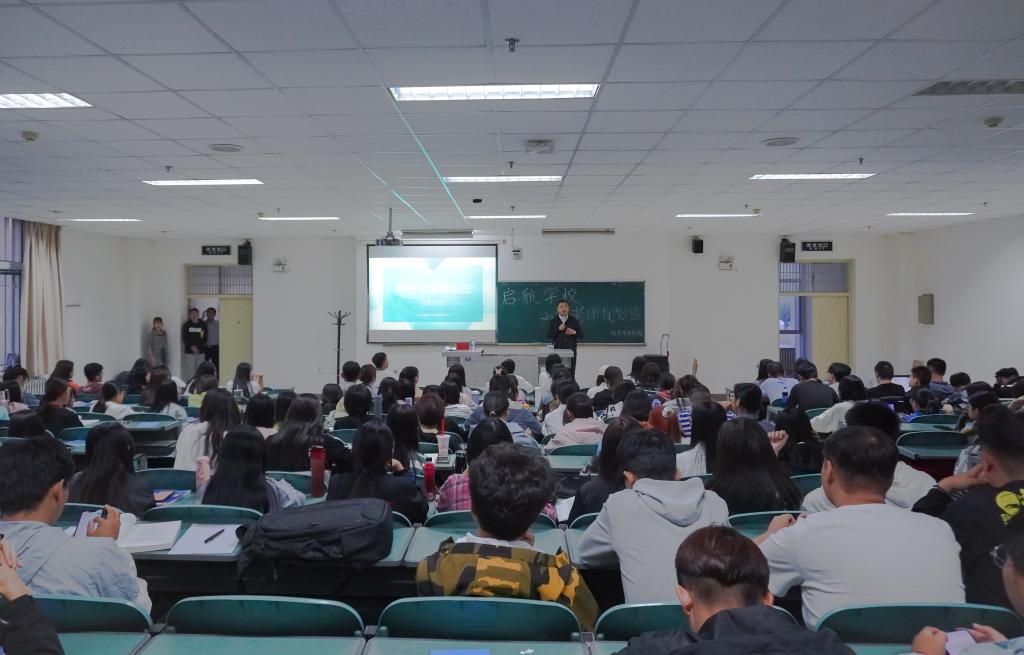 于9月16日19:00-22:00在文荟楼130室举办针对2022年考研的规划讲座,邀请了北京启航学校顾海源作为宣讲嘉宾,2018级、2019级有考研意愿的本科生参加了本次讲座。