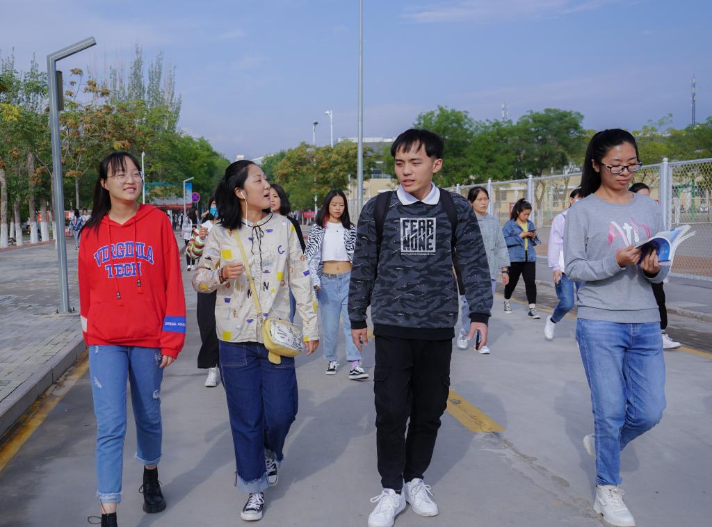 从贺兰山校区出发,一行人一路沿着农学院、音乐学院、美术学院走着,悠扬的练琴声传入耳中,路旁陈设着一系列创意作品,都显示出了校园的活力。绕过德勤楼,他们通过宁大桥进入怀远校区,环绕金波湖在健身跑道上徐徐漫步,晨风微起,碧波荡漾,金波亭周围荷叶铺陈,露珠晶莹剔透。清晨宁静的凌云广场也别有一番风采。同学们谈笑风生,赞叹于眼前的美景。经过图书馆,他们与背着书包匆匆而入的学子们不期而遇,也被17k小说