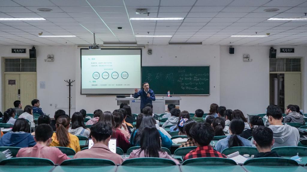 考研规划讲座在贺兰山校区文荟楼132举行,由硕成教育校长顾海源为主讲人,17k小说