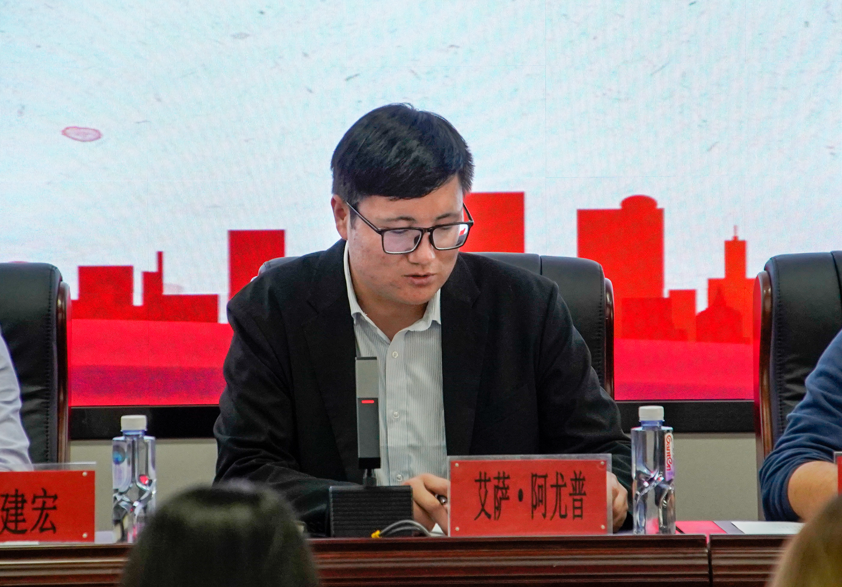 党委副书记马建宏、就业创业服务中心副秘书长艾萨·阿尤普、学院党建秘书姚硕、团委副书记孙文元、学生会秘书长禹文杰,学院团委、学生会、传媒中心主席团成员,学院就业创业服务中心全体工作人员参加此次会议。会议由艾萨主持。