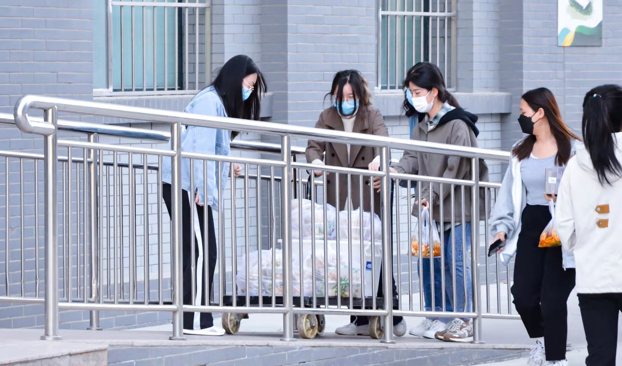 党委副书记马建宏、学生工作办公室辅导员孙文元组织学生青年突击队服务封控学生,师生共同为封控学生送餐,齐心协力,共同防控,保证疫情防控工作有力有序进行。