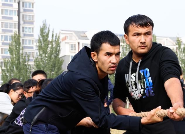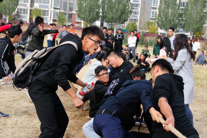 贺兰山校区篮球场举办第十二届全民健身体育文化节之拔河比赛初赛。