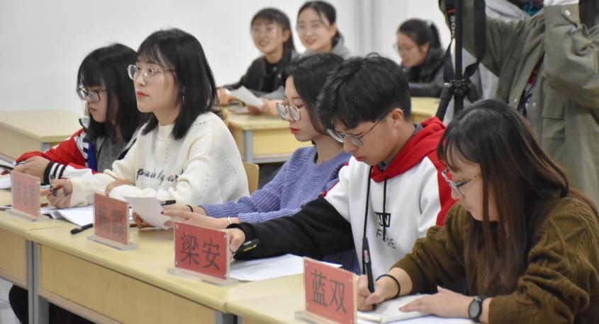 在主持人对评委简要介绍后,八位选手有序上台进行课程讲解。一号选手是来自18级会计一班的李娜,她主要就高数中的排列和集合进行展示讲解。落落大方的言谈举止和清晰的思路赢得了同学们的连连称赞。随后的选手也不甘示弱,或以幽默风趣的语言或以清晰明了的板书或以循序善诱的讲解,提要钩玄地表达了所讲知识的要点。后评委们针对每位选手的优缺点进行详细点评,他们的倾囊相授可谓是字字珠玑,选手们受益匪浅。战罢,主持人作了总结陈词。在浓厚的学习氛围中,本次大赛圆满落幕。