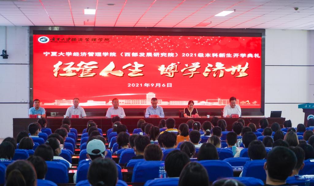2021级本科新生开学典礼暨学科专业介绍会于贺兰山校区文荟楼东报告厅顺利举行。学院党委书记朱伟,院长杨国涛,西部发展研究院副院长马军,院党委副书记程胜利、马建宏,副院长张逸,学院办公室主任杨建武,学生办公室主任黄旭兴,MBA办公室主任杨彩玲,教学科研办公室副主任梁非凡,农林经济管理系系主任东梅,经济学系系主任刘涛,会计系系主任虎兴武,工商管理系系主任张淑萍,工商管理专业负责人朱丽娅,物流管理专业负责人、工商管理系副主任蒋紫艳,学生工作办公室辅导员艾萨·阿尤普、孙文元、禹文杰及2021级全体本科生参加此次会议。会议由程胜利主持。