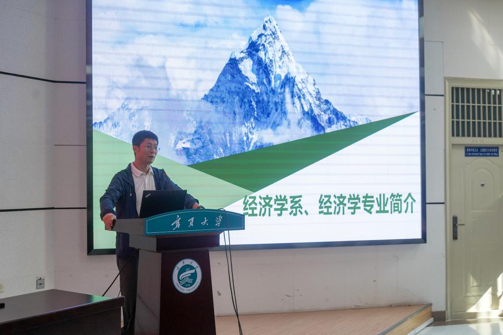 刘涛分别对经济学、经济学(金融方向)及经济学系做了简单的介绍,他用生动的语言,图文并茂地向同学们展示了经济学在不同领域中的应用和其未来的发展前景。