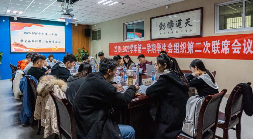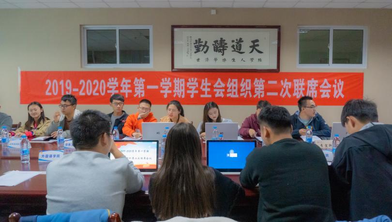 2019~2020学年第一学期学生会组织第二次联席会议于贺兰山校区文荟楼904会议室顺利召开,校学生会主席及干部、各学院学生会主席参加本次会议,会议由校学生会办公室主任李宜轩主持,校学生会主席段若璇主讲。