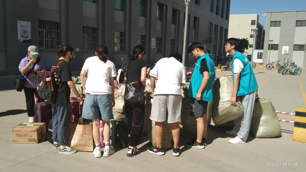 院长杨国涛,副院长张逸,学生工作办公室主任黄旭兴到场关注学生调搬宿舍情况,2018级辅导员何韶华,2020级辅导员孙文元前往现场协调管理,2018级辅导员艾萨·阿尤普则负责金凤校区的相关服务工作。搬运过程中全体师生团结一心、互帮互助,现场井然有序,呈现出欣欣向荣的青春风貌。此外,学院还组织2019、2020级志愿者帮助搬运行李,减轻现场负担,生动诠释了“经管人生,博学济世”的宗旨。