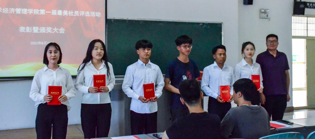 心中有美好,何处不芬芳。最美社员由社团成员自发报名参与评选,最终人选均由其余社员投票选出,充分保证了评选的公平性。艾萨·阿尤普宣读了表彰名单,为获奖者颁奖并与他们进行了合影留念。最美社员代表马宁表示他在社团活动中不仅结交到了好友,而且锻炼了人际交往与组织协调能力。他将所取得的成绩归功于老师的悉心指导与社团成员们的友好帮助,并做出要带领社团更好的服务同学、积极发挥社团优势、发展壮大社团的庄严承诺。艾萨·阿尤普对本次活动做出总结,他首先对马宁的发言表示赞同,社团不仅是学生组织,更是一个大家庭,他希望同学们在社团活动中能有所收获、快乐成长。最后,作为金融协会的指导老师,艾萨·阿尤普希望能带领同学们把社团建设好,带领着社团走向新的辉煌。