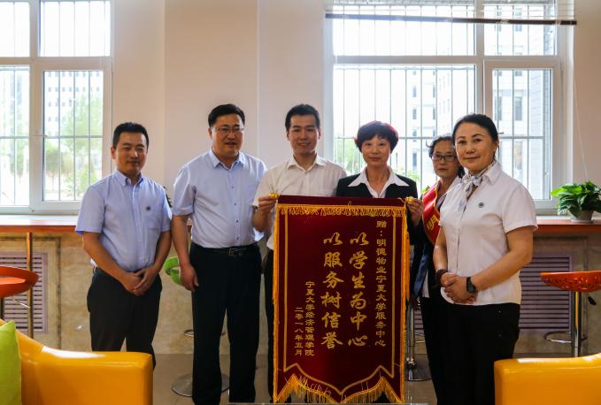 服务中心献上 “以学生为中心,以服务树信誉”字样的锦旗,表达真挚的感谢与祝福。