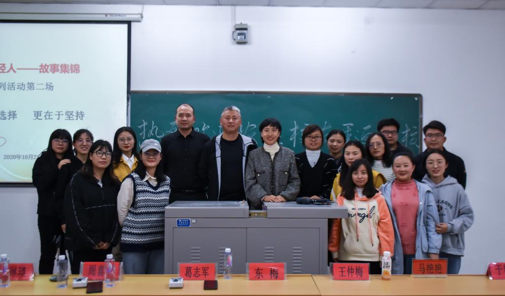 学院向两位校友赠送了精美的礼品,随后校友与老师及在场同学进行了合影留念。希望这次讲座能对同学们有所助益,在未来的日子里,慎重选择,坚持不懈,成为对社会有用的栋梁之才。