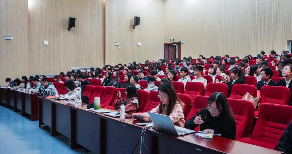 团委副书记张轲尚、马利君、谭彪担任评委,学院2020级本科生到场参加。