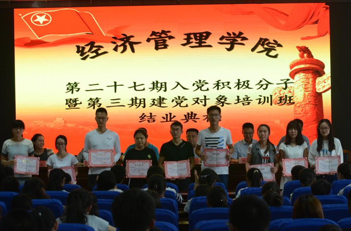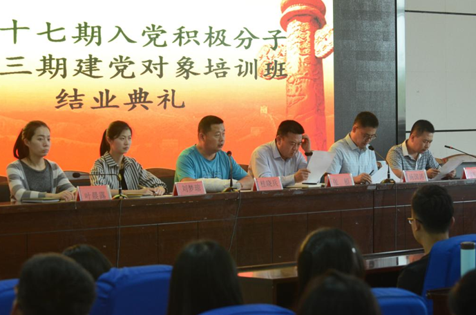 第二十七期入党积极分子暨第三期建党对象培训结业在文科楼东报告厅顺利召开,出席此次结业仪式的领导有学院党委书记张桓、院长杨国涛、副书记桂晓兵、辅导员叶晨露、刘梦琼、学办主任黄旭兴。88名入党积极分子及55名建党对象参加了此次典礼。