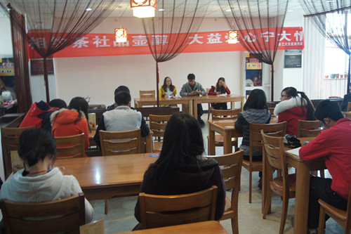 活动开始前,茶室的工作人员为参加本次活动的每位同学端上了一杯普洱茶。一切准备就绪后,主持人请茗韵茶社社长豆中文做启动仪式发言,并宣布此次活动正式开始。紧接着,一曲优雅古筝表演在安逸的茶室中徐徐展开,同学们一边品着手中的普洱,一边聆听着悦耳的古筝,整个茶室的氛围十分祥和。音乐结束后,大家一起观看了杨云雁同学带来的茶艺表演。茶艺表演共分为十道,其中以第四道冲水,第七道闻香和第八道品茶最为经典。整个过程自然流畅,一气呵成,现场气氛活跃,大家对表演赞口不绝。表演结束后,茶室的工作人员为大家介绍了大益爱心茶室的发展历程,并邀请同学们参观茶室。在参观的过程中,副社长杜玲玲热情地向同学们介绍了茶具的名称和用途。最后,社长总结了这次开幕式的意义,并宣布开幕式圆满结束。