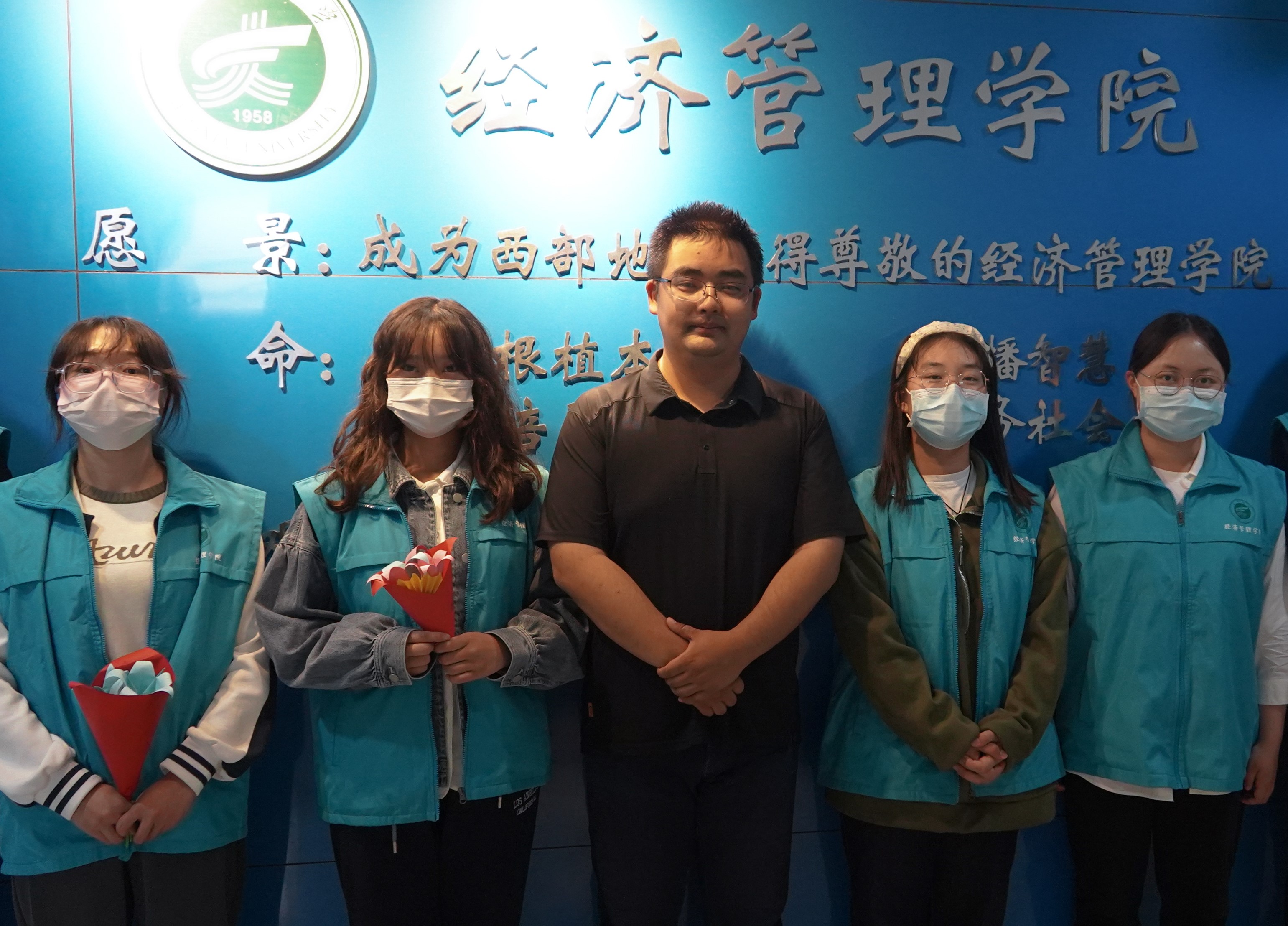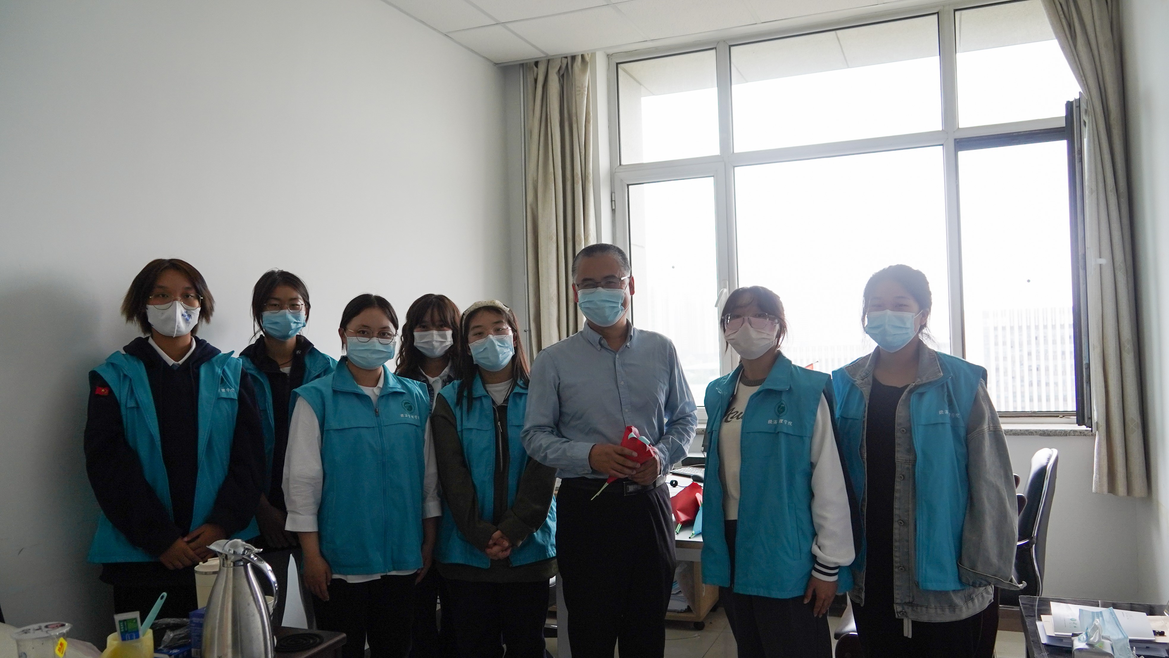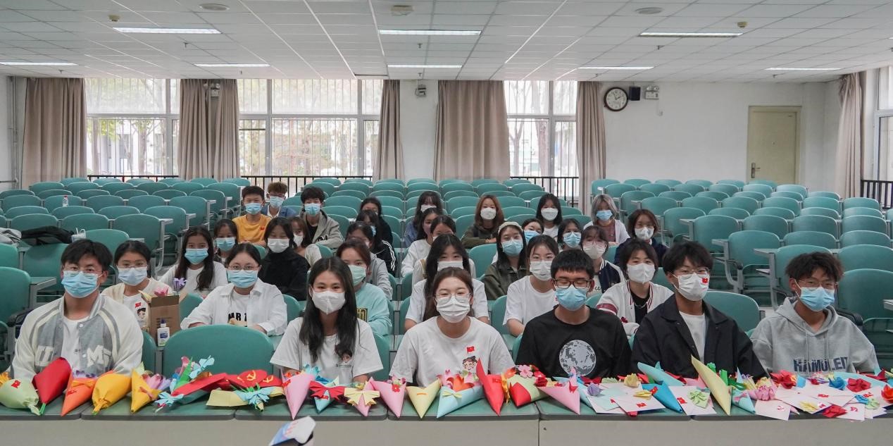 捧一抹暖阳,捻一抹纸香。同学们在静心布置的过程中享受折纸过程的快乐,在细心折叠与修剪中感受集体活动带来的喜悦。几个小时后,精心制作的小花束就在同学们的合作中完成了。活动最后,由代表同学将配有祝福语的花束分别送给了在办公室、公寓楼、餐厅工作的教职工和后勤人员。