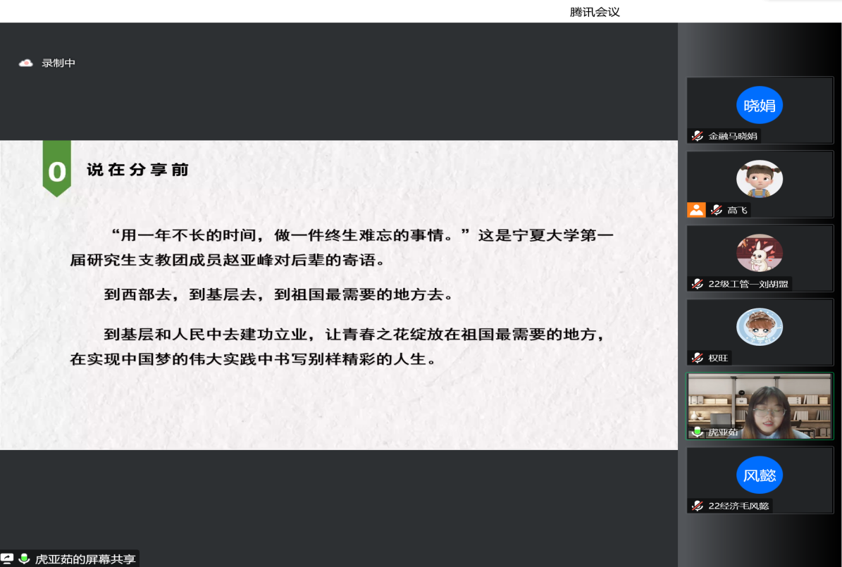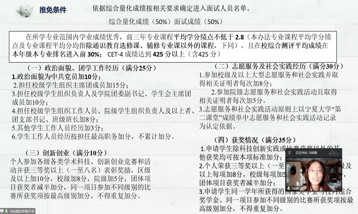 10月21日、22日晚,“塞上青春讲坛”系列活动之保研经验交流分享会于线上顺利召开。本次分享会由2019级本科生宋文静、梁振刚、权旺、虎亚茹、崔琳琳、孔令怡及2022级专业会计硕士马和霞分享,17k小说