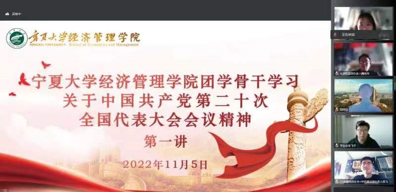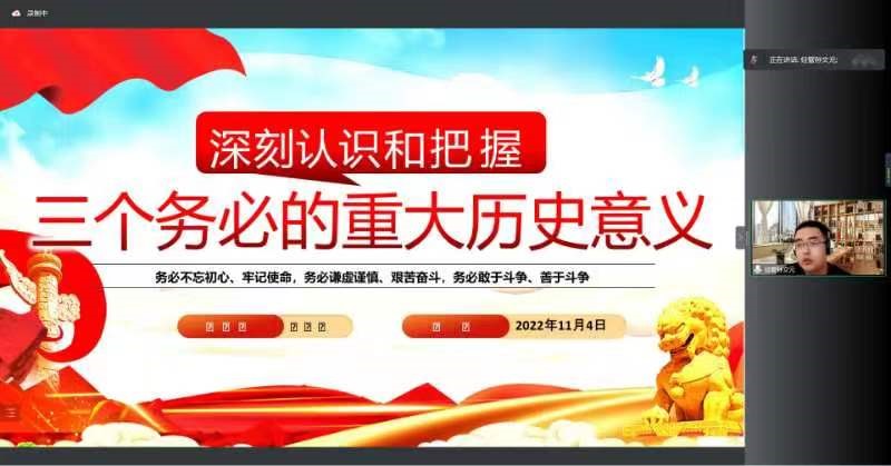 11月5日下午,17k小说 团学骨干学习中国共产党第二十次全国代表大会会议精神第一讲于线上顺利开展。17k小说 团委副书记孙文元、第十九届一期学生会全体成员及各年级班长、团支书参加学习。本次学习由孙文元主讲。