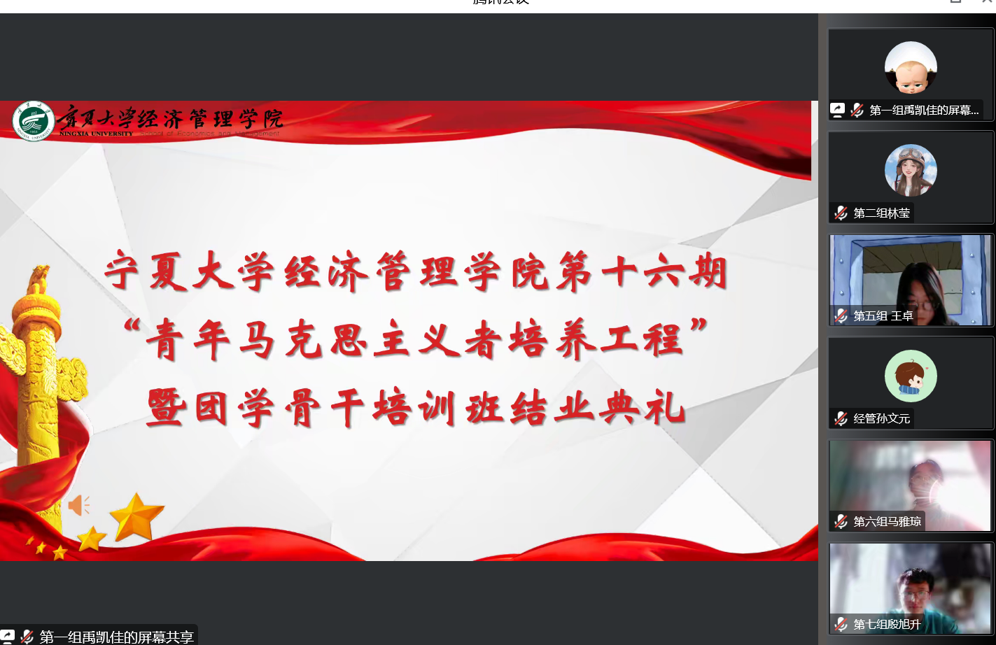 第十六期“青年马克思主义者培养工程”暨团学骨干培训班结业典礼在线上顺利举行。团委副书记孙文元及第十六期青马班全体学员参加典礼。典礼由孙文元主持。