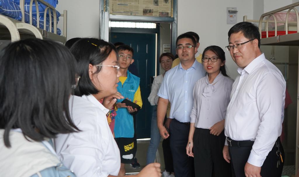 党委书记朱伟,党委副书记程胜利,学生工作办公室负责人何韶华、学生工作办公室辅导员艾萨·阿尤普、姚硕、孙文元,班主任助理李炜、杨宝华走访看望了2020级部分新生宿舍新生,为即将开始新学期生活的2020级新同学送去“第一声”问候和最诚挚的关怀。