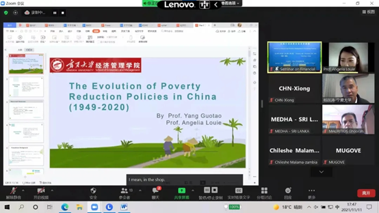 理论经济学教学团队承担主讲的《发展中国家财经管理研修班》线上教学顺利完成。本次培训英文授课,共有来自基里巴斯、毛里求斯、斯里兰卡、赞比亚、乌兹别克斯坦、肯尼亚、津巴布韦等7个国家的23名政府官员参加。17k小说