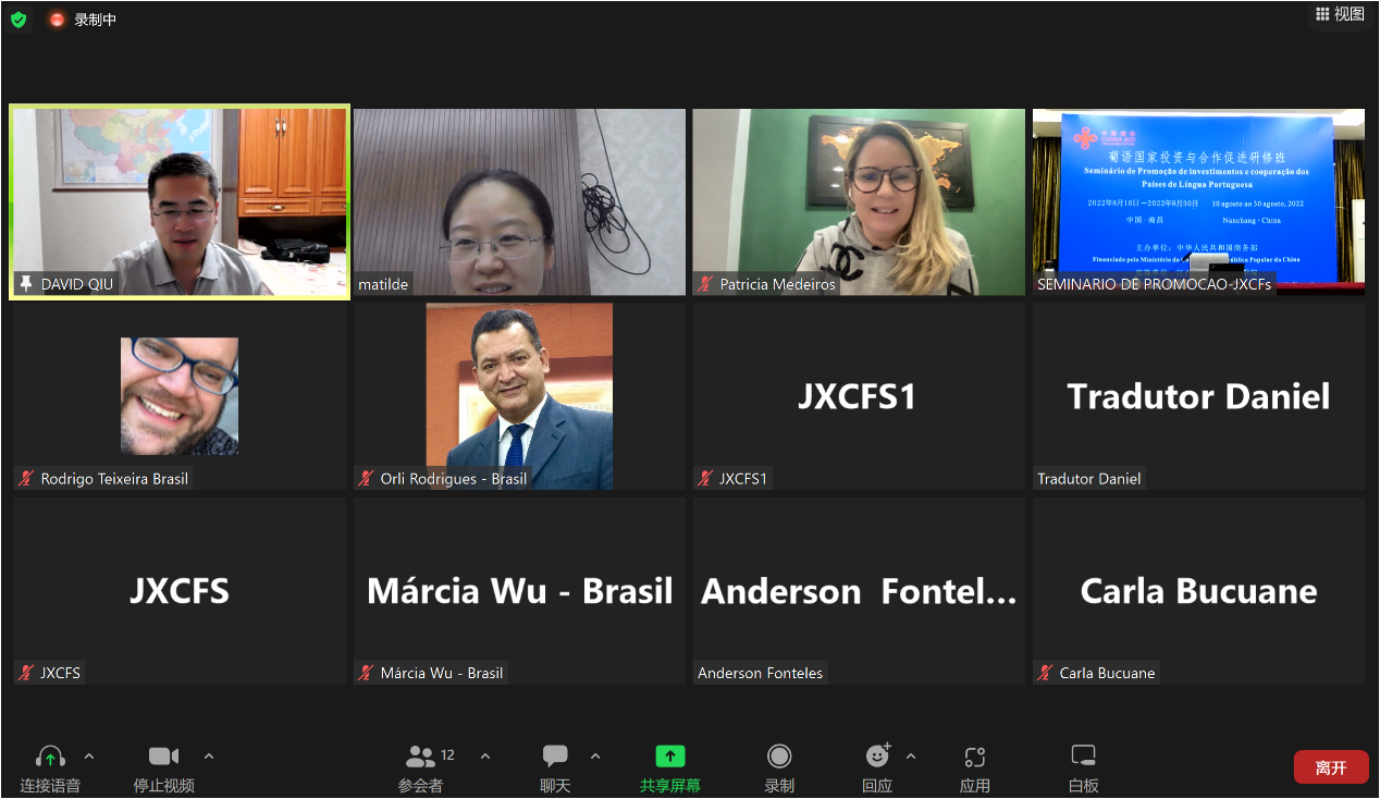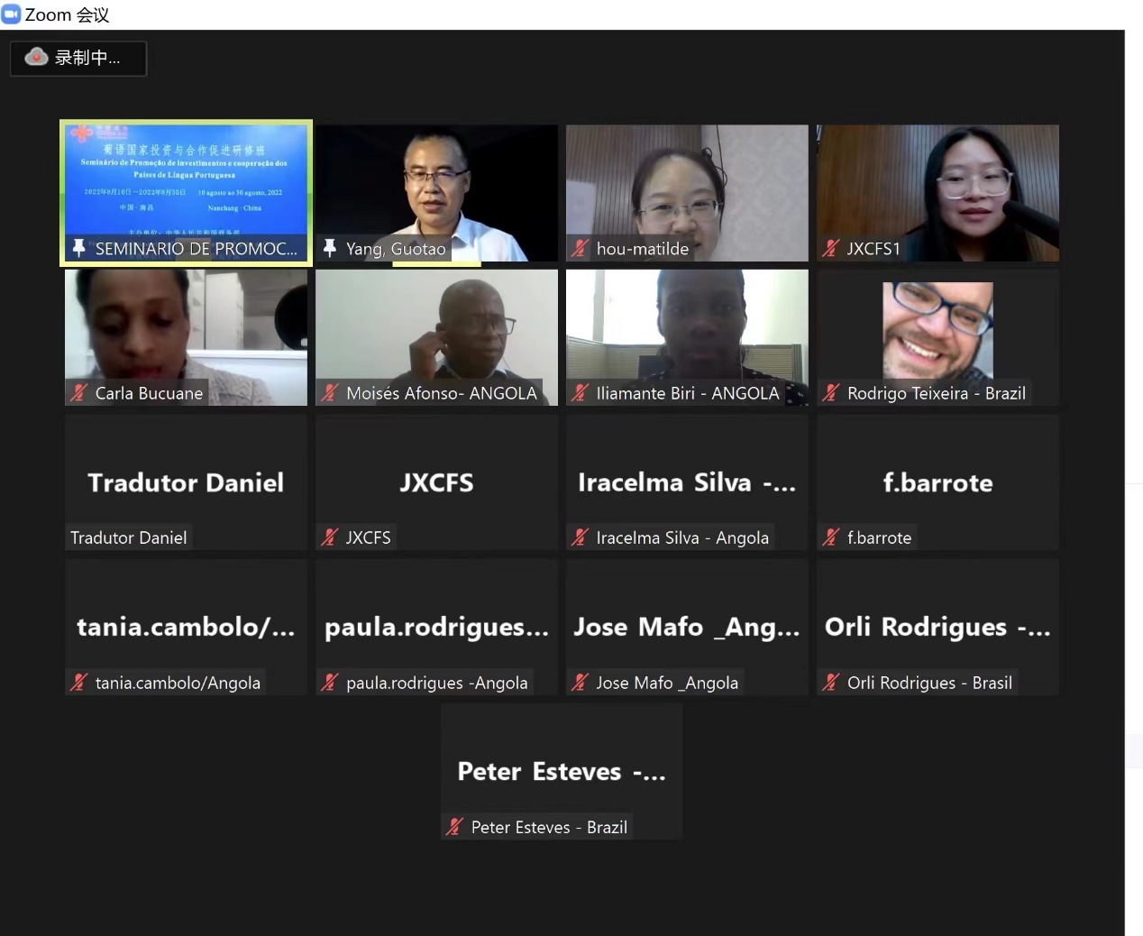2022年8月10日至8月30日,由商务部主办、江西省商务厅承办、江西外语外贸职业学院具体组织实施的“葡语国家投资与合作促进研修班”在线培训成功举办。此次研修班共有来自巴西、莫桑比克和安哥拉3个国家的41名学员参加培训。17k小说