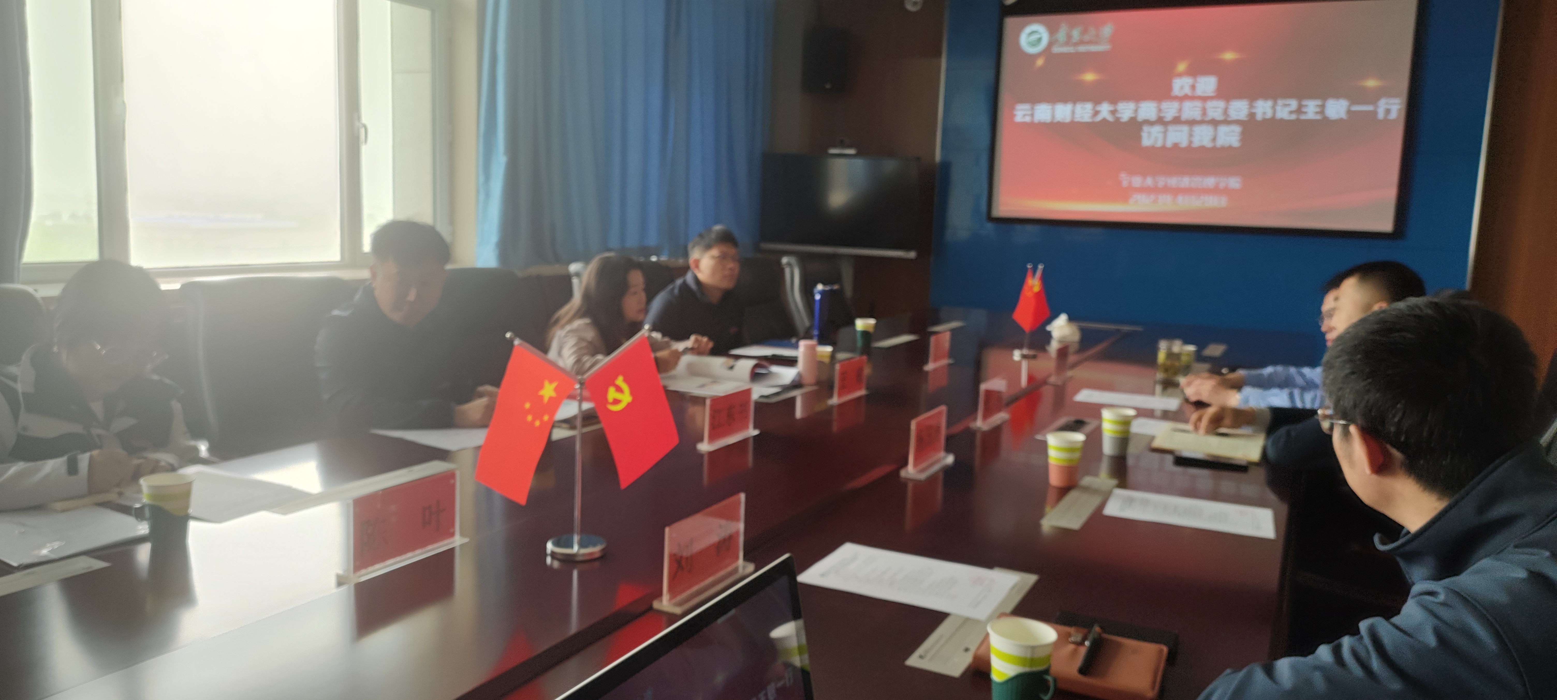 的热情接待表示感谢,介绍了云南财经大学和云南财经大学商学院的总体情况,重点介绍了学院在专业建设、党建、就业工作等方面的典型做法与事例,回应了在师资建设、MBA培养等方面深化合作的思路。