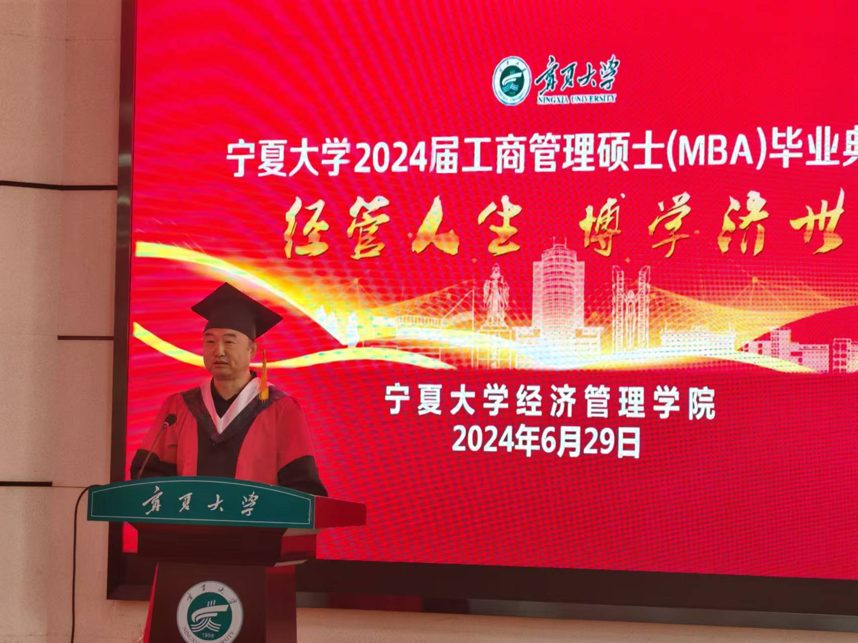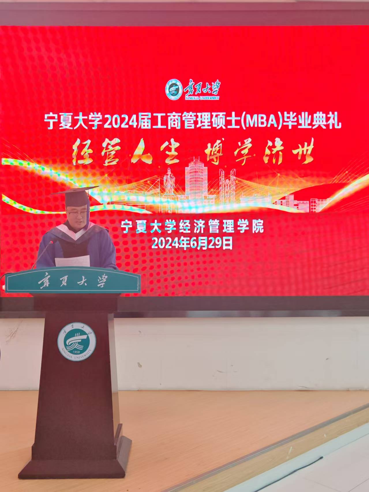 2024届工商管理硕士(MBA)毕业典礼暨学位授予仪式在贺兰山校区文荟楼报告厅隆重举行。学院党总支书记赵军、院长杨国涛教授、副院长康凌翔教授及MBA中心王艳老师、李婷老师、罗婧老师与2024届全体MBA毕业生同堂共庆。典礼由17k小说