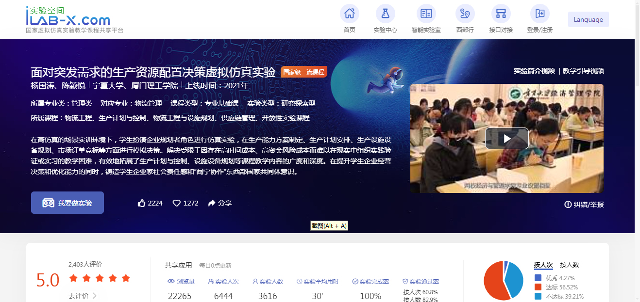 (西部发展研究院)与厦门理工学院经济与管理学院一流课程建设启动共建虚拟仿真实验课程,高效地进行了项目协作建设探讨、商议和实施。期间,两校合作远程协作完成申请书撰写、视频合成、国家实验空间的系统上传等工作,高效地完成了申报手续。2023年6月两校合作申请《面对突发需求的生产资源配置决策虚拟仿真实验》教学获批第二批国家级一流本科课程,并为后续协作发展奠定了坚实的基础。