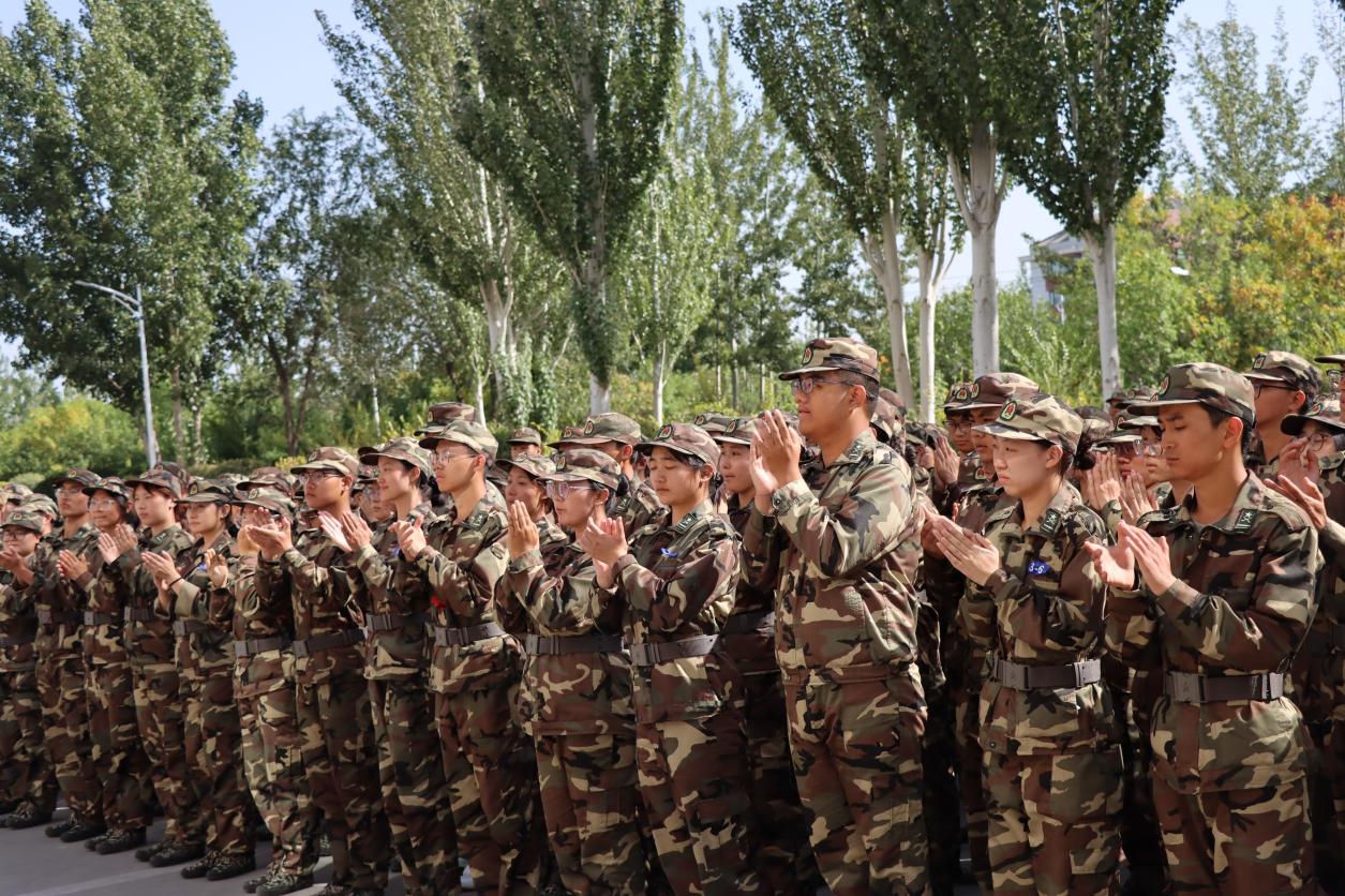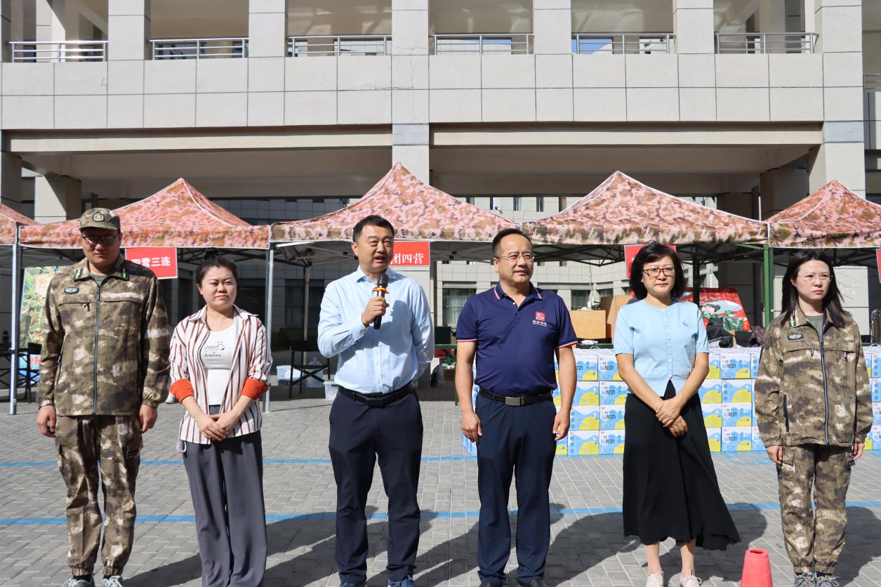 九月的银川,秋高气爽。训练场上,一抹抹迷彩绿整齐划一,挺拔的身姿、坚定的目光、嘹亮的口号,构成了校园中最昂扬的风景线。为表达学院的深切关怀与殷切期望,9月9日上午,学院党总支书记赵军、勤学书院党委书记、院长马瑜深入训练场,看望并慰问正刻苦训练的2025级全体新生与承训教官,为他们送去秋日的清凉与鼓舞。