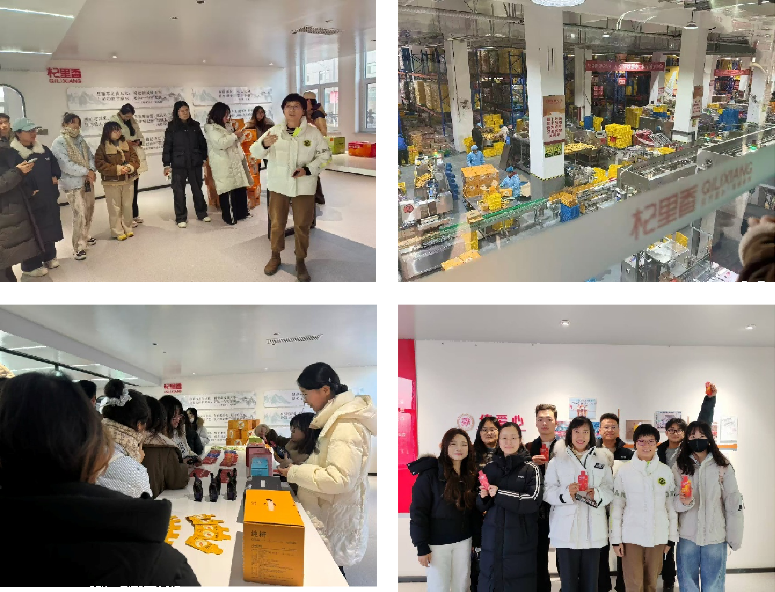 带着对特色产业市场经营的思考,师生们来到了本次行走课堂的第二站——宁夏杞里香枸杞有限责任公司。杞里香品牌创立于2008年,三位创始人从大二就开始创业,是一家专注于全品类的新中式滋补品牌,企业以“东方滋补,平衡食养”为核心定位,聚焦一二线城市的年轻消费群体,并始终秉持“勤奋、谦卑、诚实、进取、创造”的价值观,在稳健发展中连续多年蝉联天猫平台枸杞类目销量第一名。师生们走进数字化生产车间,观摩自动化生产线有序完成枸杞从筛选、清洗、加工到包装的全流程作业,并系统了解了杞里香从一颗枸杞到一个品牌的发展壮大史,深入感悟其“向世界传递东方食养智慧”的企业使命。以车间为课堂,总经理助理陈晓莉详细介绍了公司如何通过标准化种植、科技创新和品牌化运营,将宁夏枸杞这一地域特产打造成走向全国的知名商品。同学们不仅目睹了杞里香枸杞深加工产品矩阵,而且现场品尝了纯耕阿胶五红饮、人参枸杞原浆、熬夜水、五指毛桃赤小豆饮等新品,从视觉、味觉多维度感受了现代农业企业的创新活力。在互动环节,同学们踊跃提问,陈助理逐一回应,师生们收获了深刻的课堂体验和经典的创业故事。