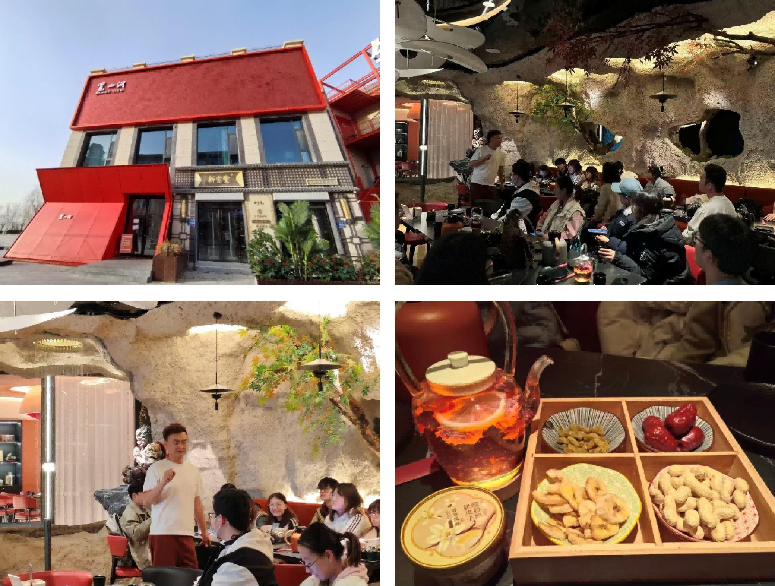 活动的首站来到了银川市颇具人气的初创企业——览山涧新派早茶餐厅。该餐厅紧邻阅海湖与览山公园,以独特的洞穴风装修搭配“紫霞仙子”“水帘洞”等影视IP元素,一进门便让学生们感受到了浓郁的西北烟火气息与松弛的沉浸社交属性。作为银川本土崛起的城市地标餐饮,览山涧主打“早茶+新派融合”模式,80种菜品中既有羊杂、蒿子面等宁夏本地风味,也涵盖罗氏虾刺身、特调茶饮等新派美食,让其成为兼顾本地食客日常与游客打卡需求的热门选择。以餐厅为课堂,创始人高鹏飞面对面与师生们交流分享了他的创业初心、品牌打造历程以及在餐饮红海中突围而出的经营心得。他从市场定位、产品创新、客户服务到团队管理,娓娓道来,将一个抽象的“创业”概念具象化为一段充满挑战与智慧的奋斗故事。同学们现场品尝了精致的干果拼盘、花果茶和奶皮子酸奶酪,就“如何平衡传统与创新”、“初创企业如何精准营销”、“服务业如何应对消费升级”等问题踊跃提问,高总一一给予了坦诚而精彩的解答。