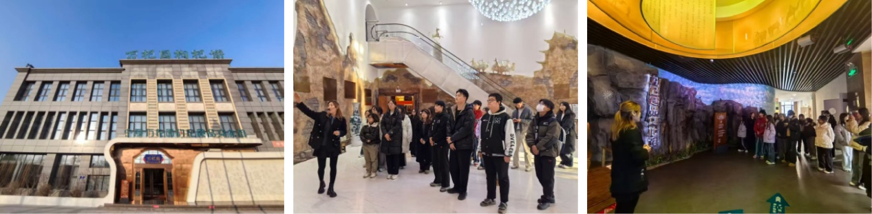 接着,师生们走入宁夏万杞园枸杞食品文化馆。这是宁夏首家集食品文化、观光工业、DIY体验、旅游购物于一体的文化馆,是国家3A级旅游景区,最大规模日接待量超3000人。讲解员从枸杞的历史渊源、药用价值到现代食品工业的创新转化,完整的展示让同学们对这颗“红宝石”有了全新认识。在枸杞文化展示区,讲解员详细介绍了枸杞从种植到深加工的全产业链。样品展区内,枸杞原浆、枸杞烘焙等制作的枸杞冰砂饼、枸杞大黄米粽等产品的研发实践,更彰显了宁夏特色农产品从“田间地头”到“餐桌美味”的创新之旅。
