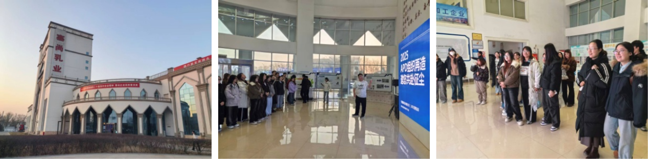 随后在专业技术人员的引导下,同学们沿着参观通道,亲眼见证了一条条横竖交错的管道和一个个巨型储奶罐,就是通过这样奇特的机器,原料奶在不同管道和容器内快速穿梭后,变身为蛋白粉、奶酪、稀奶油、厚乳等深加工乳制品。令同学们印象深刻的是,这些高科技生产线正在为星巴克、瑞幸、喜茶、茶百道等知名品牌提供原料,2023年曾为风靡一时的“酱香拿铁”提供了核心原料,成为国内茶饮咖啡赛道的主力供应商之一。