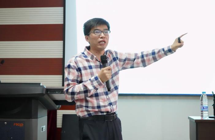 讲座在热烈掌声中拉开帷幕,杨国涛向到场师生介绍徐维东:17k小说