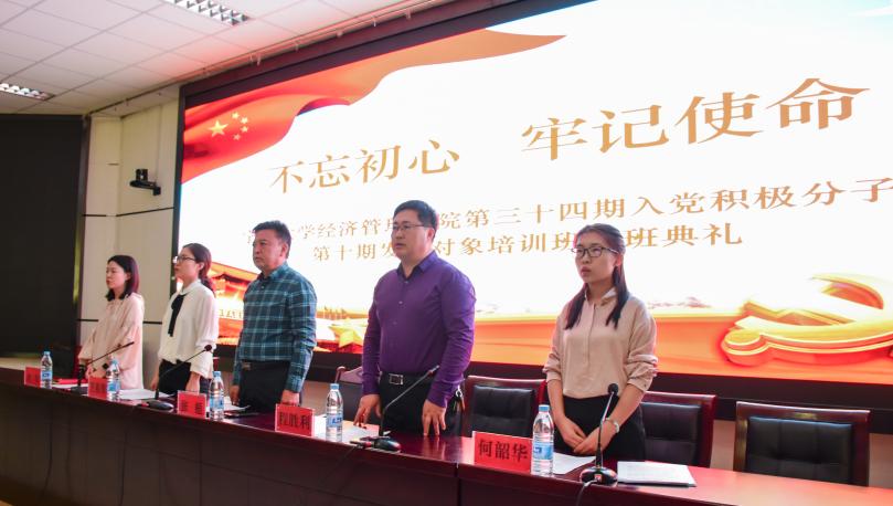 分党校2019年秋季班开班典礼于贺兰山校区文荟楼东报告厅顺利召开。学院党委书记张桓,党委副书记程胜利,学生工作办公室负责人、会计学本科生党支部书记王嘉豫、工商管理本科生党支部书记姚硕参与本次会议,第三十四期入党积极分子暨第十期发展对象到场学习。典礼由何韶华主持。