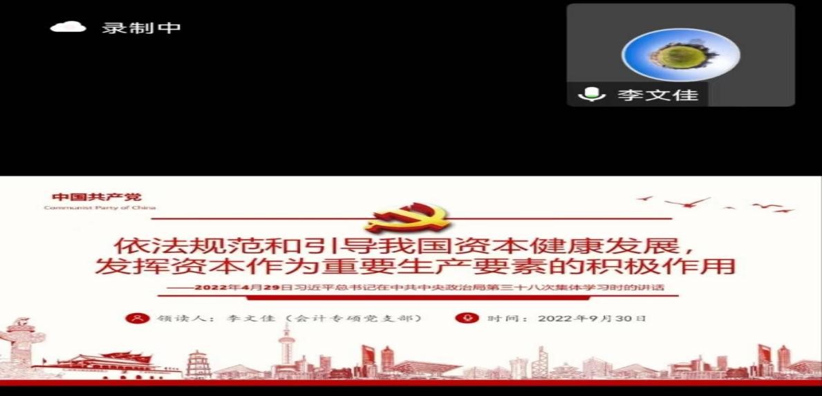 “大学习、大讨论、大宣传、大实践;学讲话、悟思想、见行动、当先锋”系列主题党日活动在线上顺利举行。经济学本科生党支部、会计专业硕士党支部、农林经济管理本科生党支部参加本次会议。会议由杨艺帆主持。