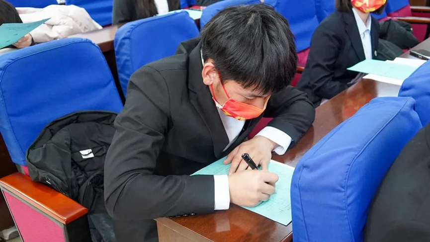 团委书记黄旭兴致开幕词,他追忆烽火岁月的沧桑历史,畅想新时代的复兴之梦,鼓舞时代青年大步向前、勇立潮头,慷慨激昂的声音感染了在场所有人。党委副书记马建宏为本次大会致辞。