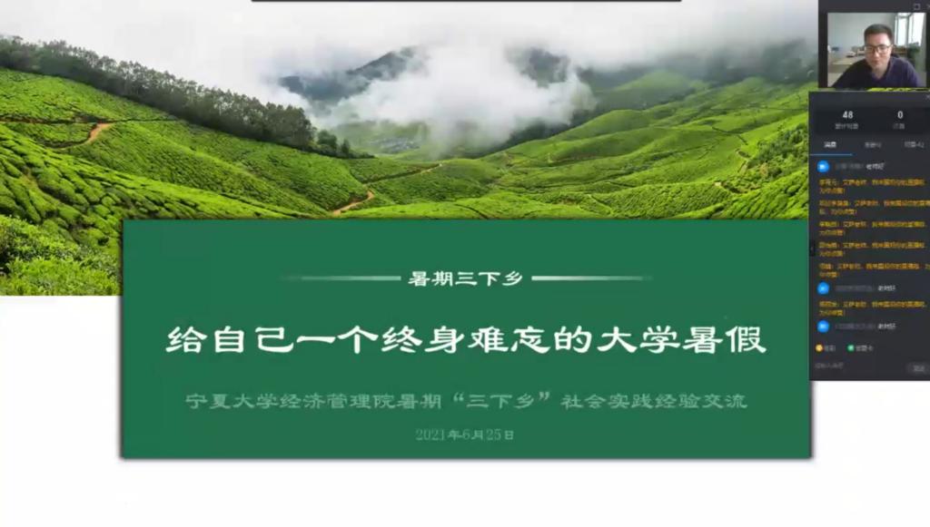 于2021年6月25日晚上8:00在学院本科各年级钉钉群联播的方式举行2021年暑期三下乡社会实践培训会,学院学生工作办公室负责人、团委副书记何韶华,学院团委副书记、辅导员艾萨·阿尤普,各年级本科生暑期社会实践团队成员参加培训,本次培训由艾萨·阿尤普主讲。