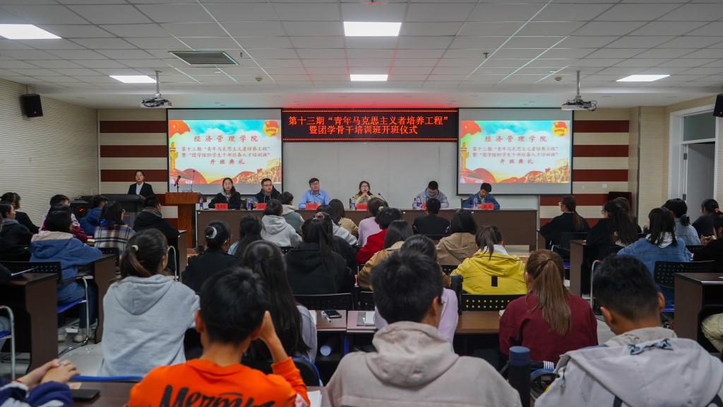 于贺兰山校区文荟楼316教室举行了第十三期“青年马克思主义者培养工程”暨团学骨干培训班开班仪式。学生工作办公室负责人何韶华、辅导员艾萨·阿尤普、团委副书记马利君、籍楚妮、张轲尚、谭彪以及第十三期青马班全体学员到场参加会议。会议由马利君主持。