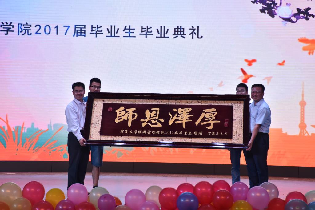 最后,学院书记张桓代表学院接受了毕业生代表向学院赠送的留念礼品——一副上书“师恩泽厚”的匾额,承载了毕业生对老师们的敬重与感激。