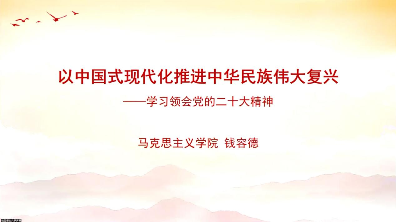 马克思主义学院副院长钱容德老师作题为“以中国式现代化全面推进中华民族伟大复兴”的学习领会党的二十大精神专题宣讲。宣讲会由学院院长杨国涛主持。